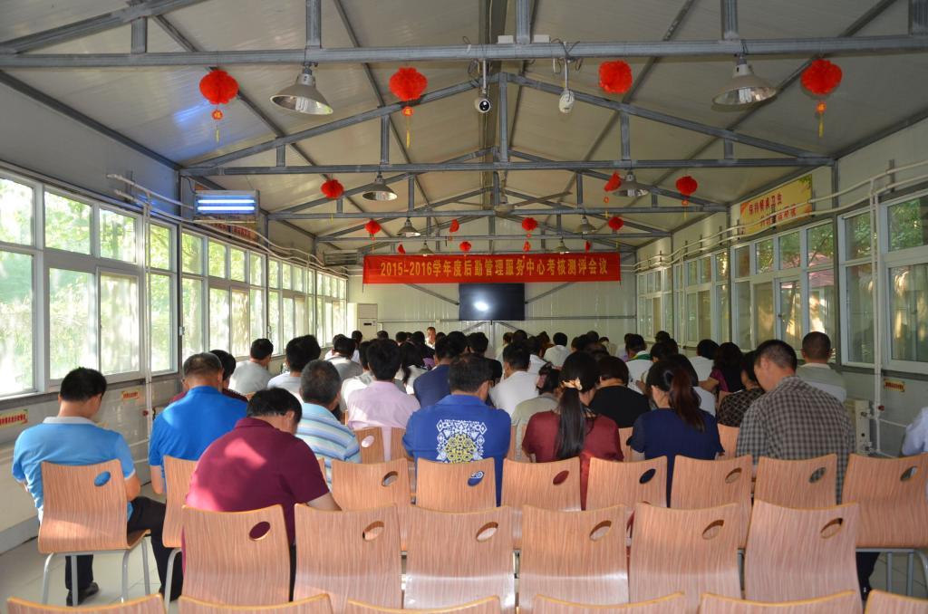 6 月 27日,后勤管理服务中心召开2015——2016学年度各部门及中层干部考核测评会议。后勤管理服务中心全体中层干部、在编员工、大学生及员工代表50余人参加了会议。会议由党总支书记王建强主持。