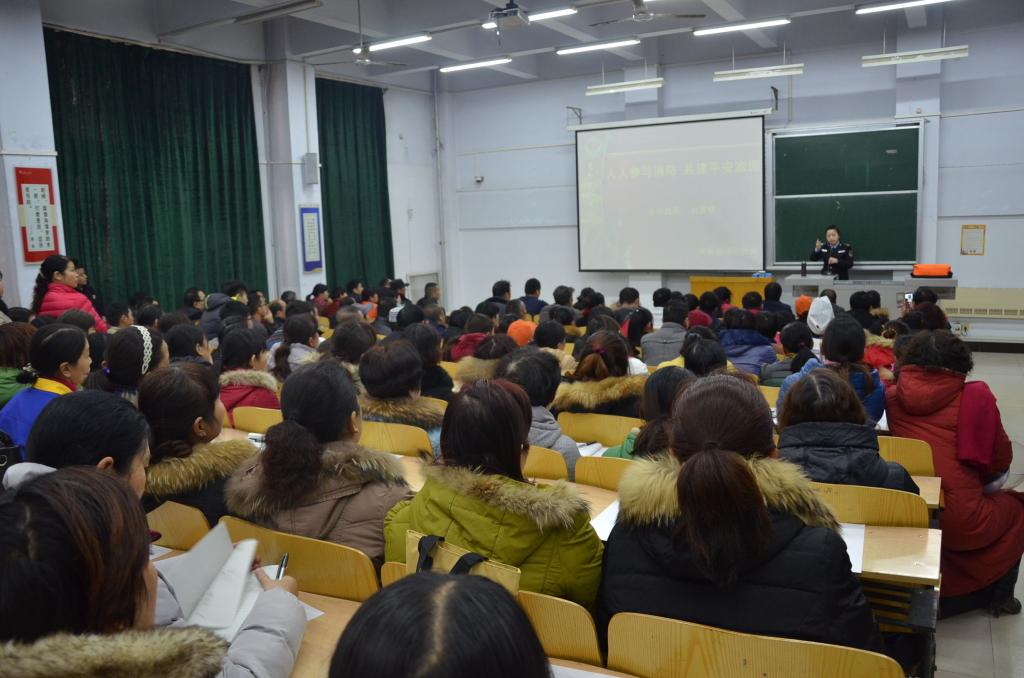 培训分上下午两场,A合八教室座无虚席,许多员工站在那里听取培训。一幅幅触目惊心的照片、一段段痛彻心扉的视频使与会人员感慨万千,火灾离我们并不遥远,它就在我们身边。刘教官结合近年来发生的典型火灾案例,介绍了火灾的预防、扑救以及火场逃生等消防常识,特别针对食堂、学生宿舍、商户等火灾的预防和应对进行了重点讲解。讲座中,刘教官还讲解了如何预防火灾事故的发生、如何扑救初起火灾及逃生自救常识,并向员工讲述了火场中疏散逃生的要领、技巧以及扑救初期火灾的方法。同时就如何提高检查消除火灾隐患能力、扑救初起火灾能力、组织疏散逃生能力和消防宣传教育能力等方面进行了全面讲解。
