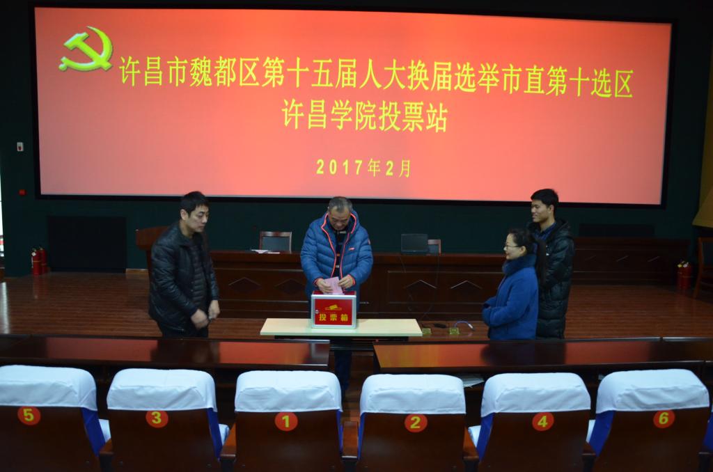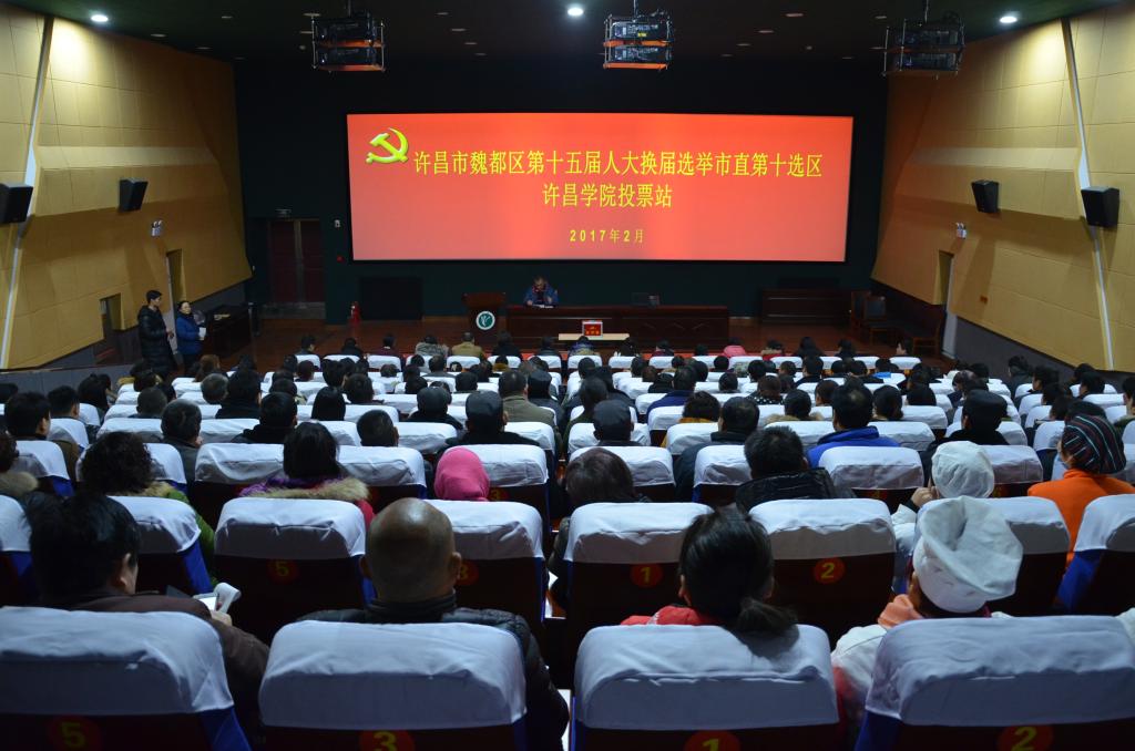 2月22日上午,魏都区第15届人大代表换届投票选举活动正式进行,作为市直第十选区许昌学院投票站,在双创中心会议室的投票选举现场,将投票选举出魏都区第15届人大代表。红色的投票箱放在主席台正中,现场座无虚席,气氛严肃庄重。