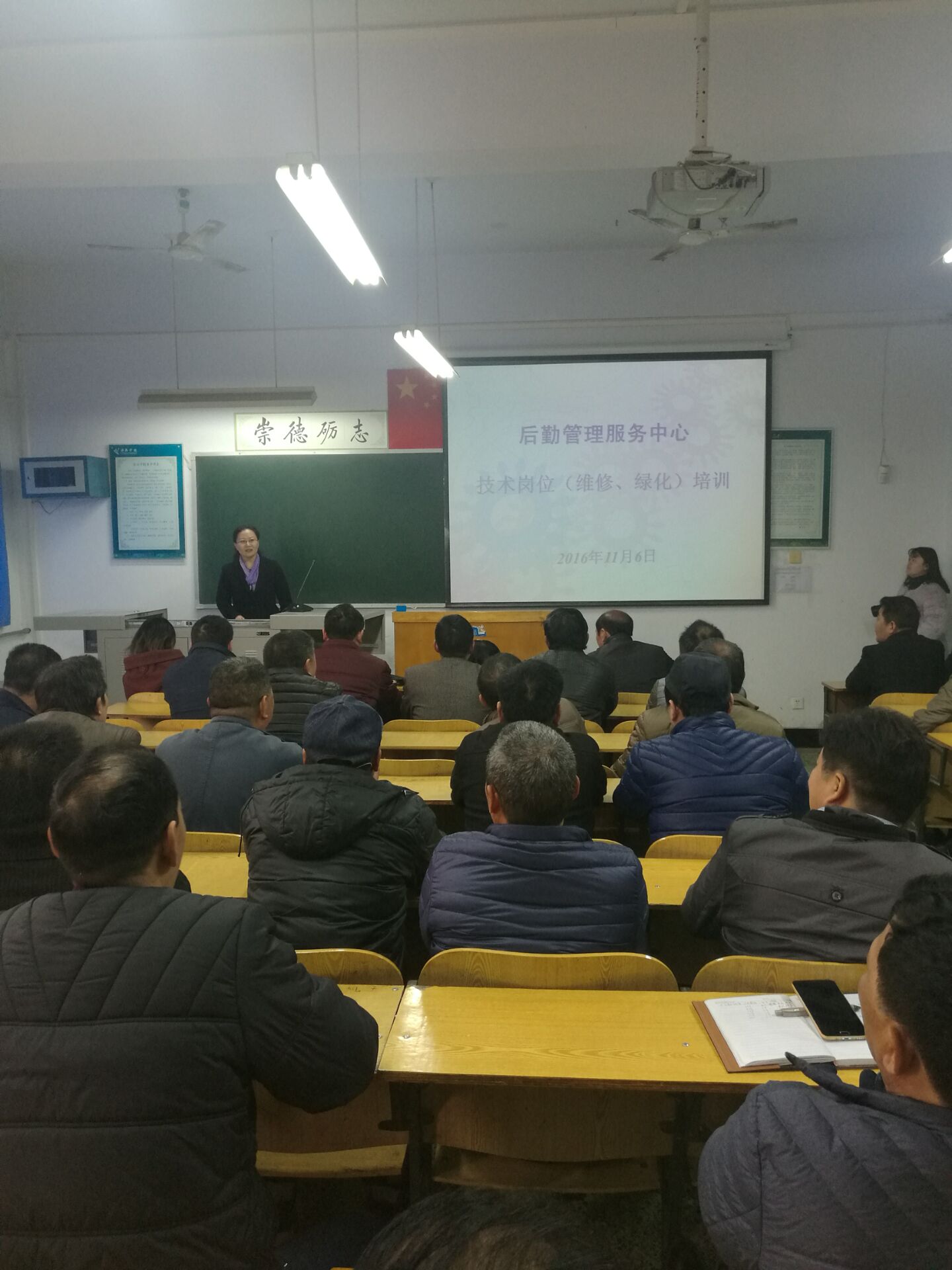 为进一步提升后勤员工整体素质,提高技术岗位服务意识、安全意识和节能意识,调动技术人员工作积极性,11月6日后勤组织开展绿化、维修专业知识培训,物业服务公司能源部和绿化科全体工作人员60余人参加培训,培训会由人事科科长姜晓燕主持。