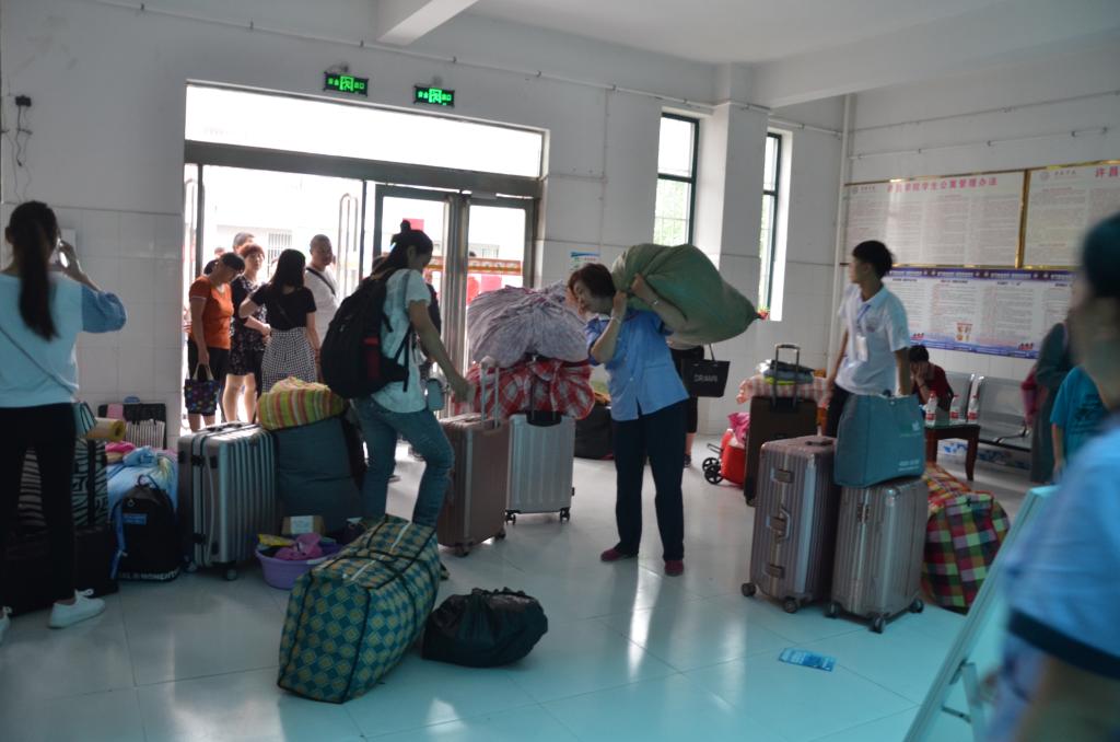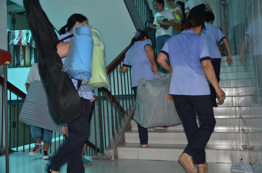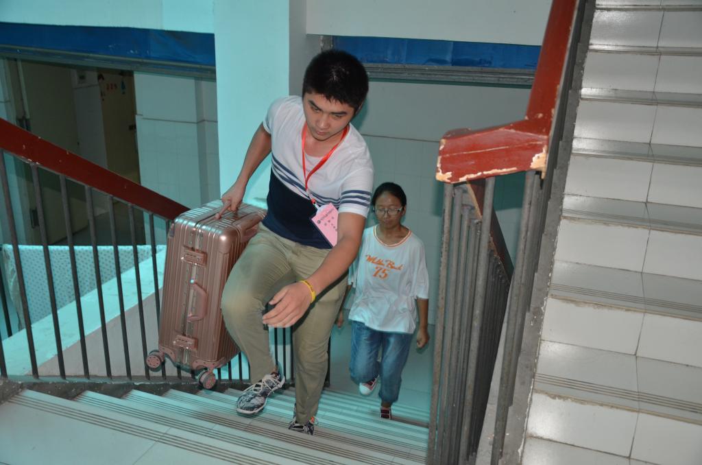 为给新生营造一个安全温馨的住宿环境,今年后勤管理服务中心加大管理力度,组成迎新生义务服务队并联合校学生会志愿者,把新生安全送到宿舍。志愿者引领报过名的新生到指定宿舍楼,分完宿舍后家长在宿舍楼外等候,后勤服务队的阿姨帮同学们把行李搬到指定宿舍。今年新生大多数住在六楼,每栋宿舍楼大概入住500多名新生,服务队的阿姨早上七点就到岗,截止到晚上六点一位阿姨平均上下六楼200多次,许多阿姨的衣服都是湿了干干了湿,汗都顾不上擦一下。一位新生看着跟自己妈妈年纪差不多的阿姨帮自己搬行李,一路心疼的说:“阿姨辛苦了,阿姨谢谢您……”阿姨笑着说:“你们都像自己的孩子一样。”今年宿舍分配住宿秩序井然,许昌学院让新生入校第一天就感受到了家的温暖。