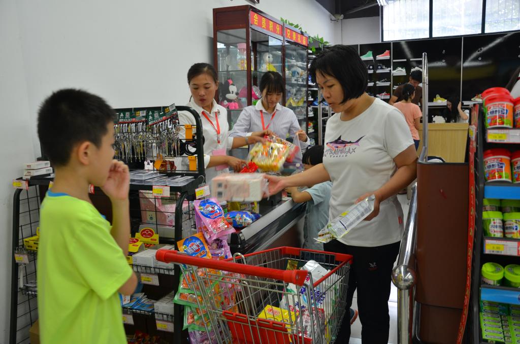 迎新期间,校园人流量大,为给学生提供良好的购物环境,学梓生活家园超市提前准备,备足新生所需物品;所有员工全员上岗,有的员工一站就是将近一天的时间,但大家仍然面带微笑迎接每一位顾客。