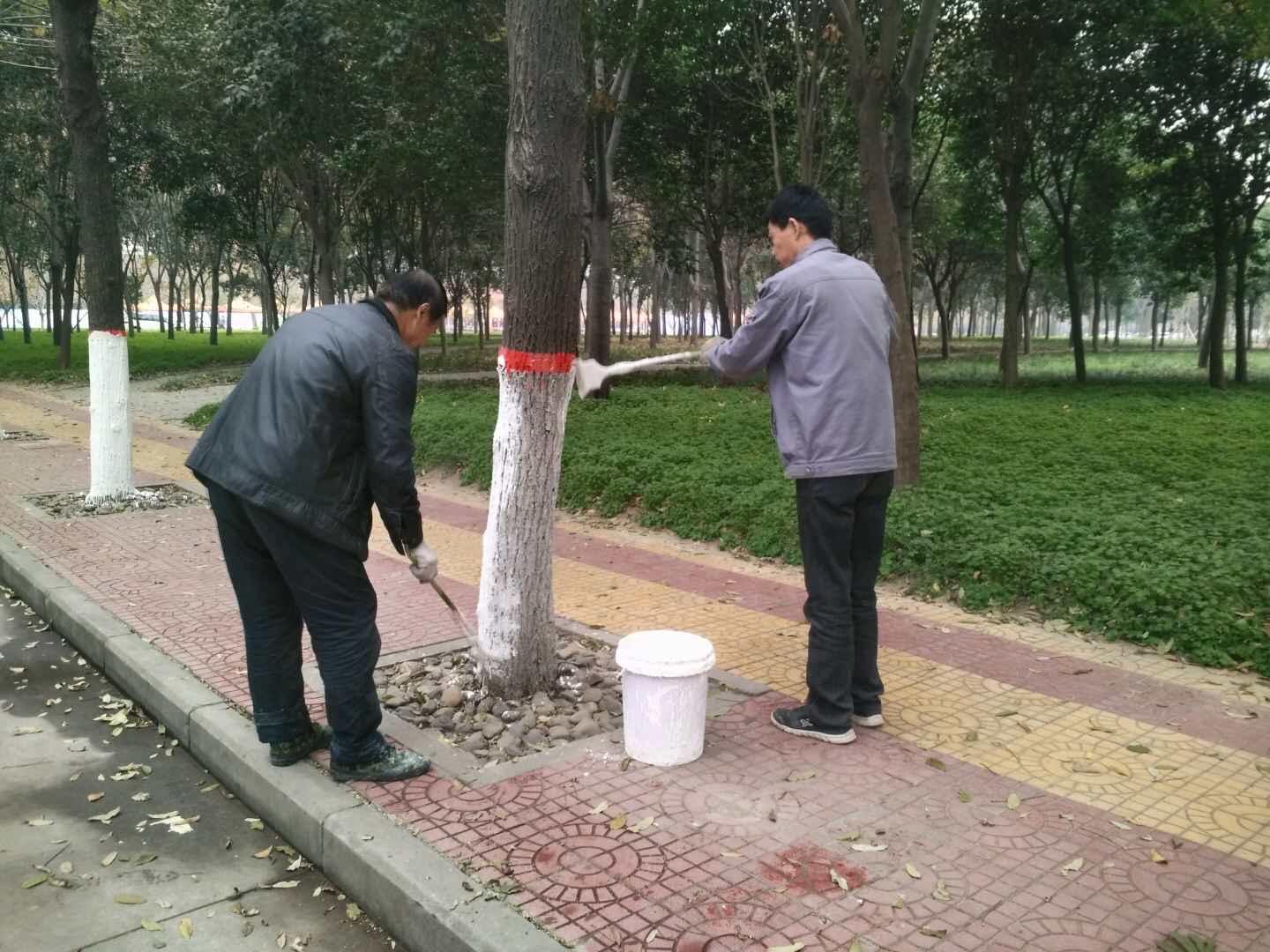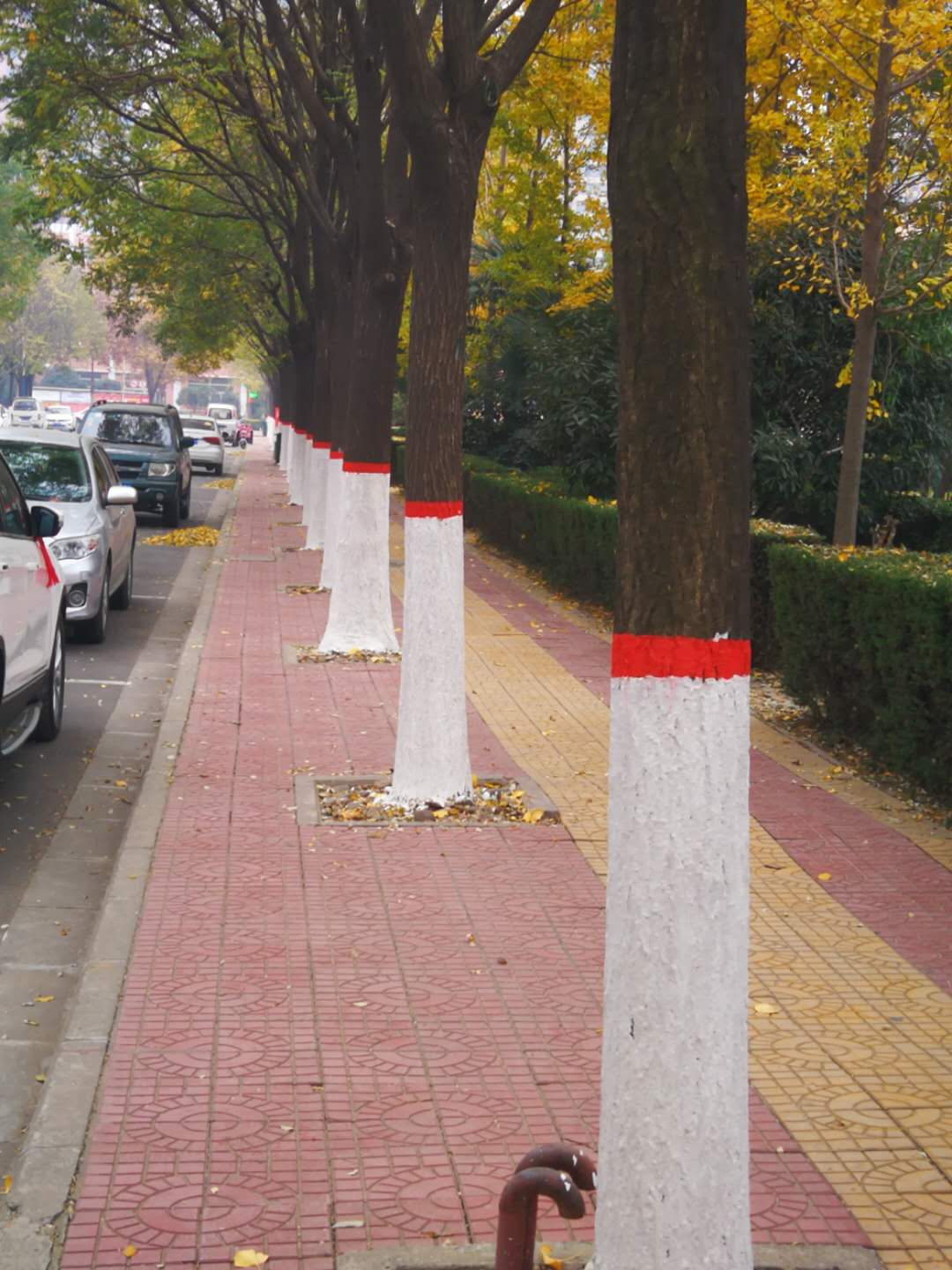 为了我校行道树的健康生长,后勤绿化科从11月中旬起就对我校行道树开始进行树干涂白的越冬防护措施。冬季树干涂白有很多作用:可减少阳面树皮因昼夜温差过大引起的冻害;可消灭在树皮的缝隙中越冬的成虫、虫卵,具有防病、杀虫(卵)、灭菌等多重作用;树木吸收了涂白剂中的营养成分后,整个植株的抗病、虫、害的能力明显增强。