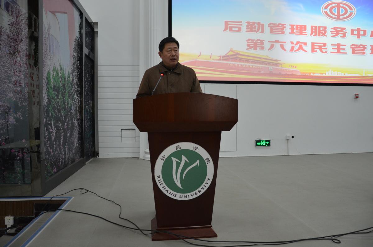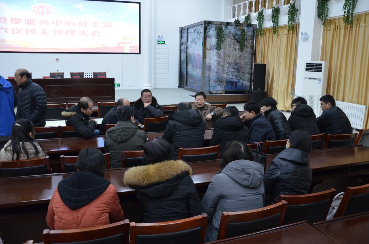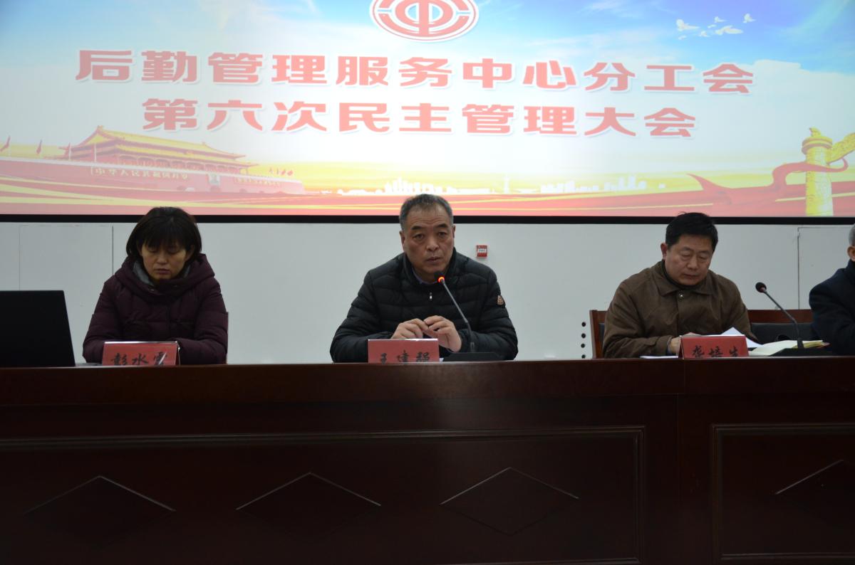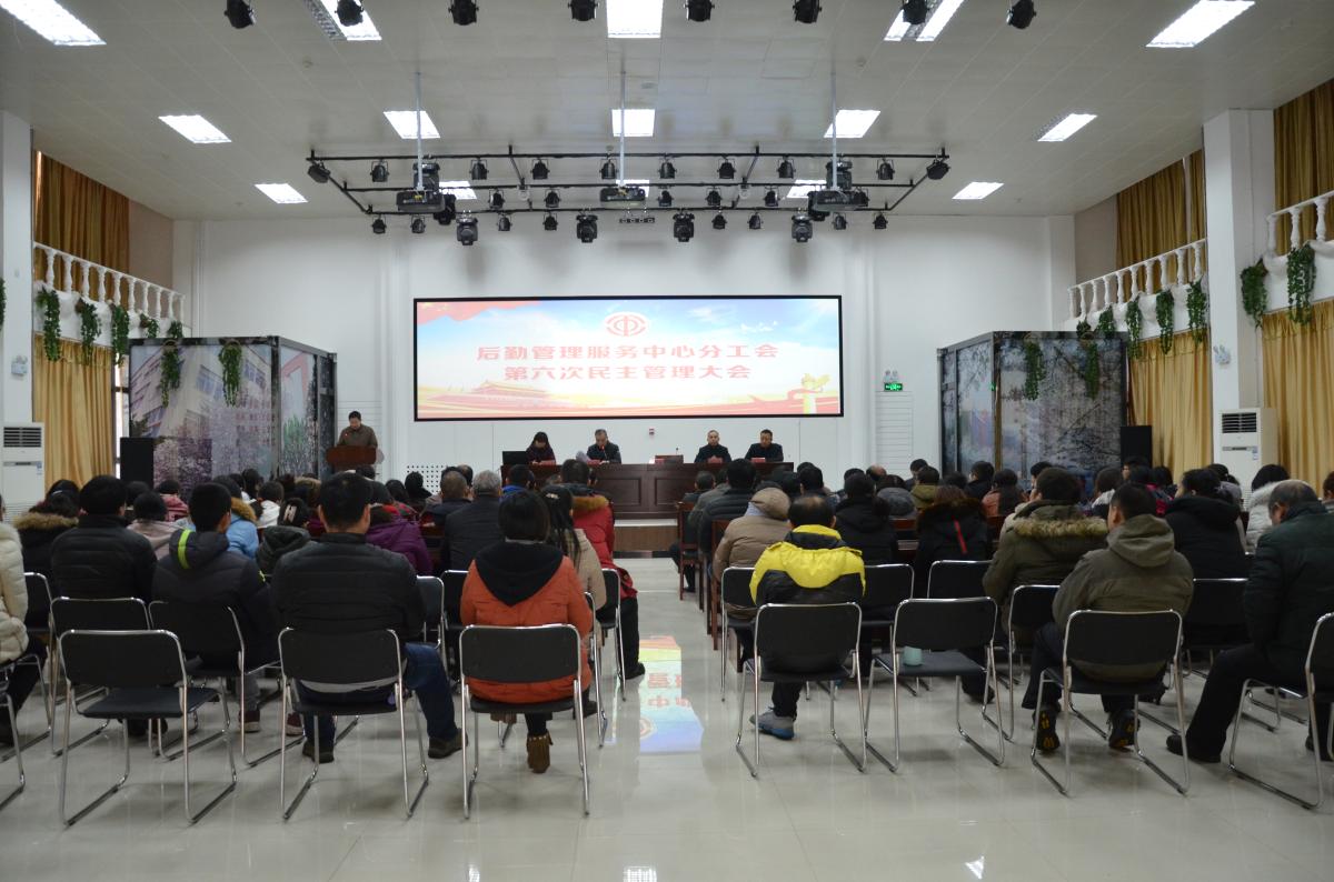 1月25日上午9:00,后勤管理服务中心第六届民主管理大会在创新创业学院培训中心召开。主任龚培生,工会主席、党总支书记王建强,副主任彭水霞,岳永晓、杨平勇出席会议,80多名工会会员参加了会议,会议由党总支书记王建强主持。
