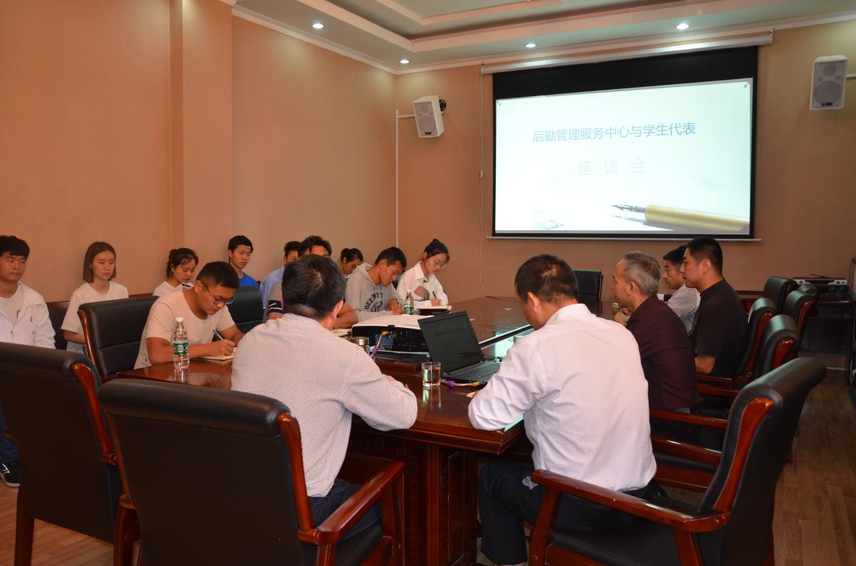 为改进后勤工作,提高后勤管理水平和服务质量,9月30日下午,后勤管理服务中心与学生代表座谈会在三楼会议室举行。后勤管理服务中心主任龚培生,副主任岳永晓、杨平勇,饮食、物业、商贸、校医院等各部门负责人及12余名学生代表参加了座谈会。
