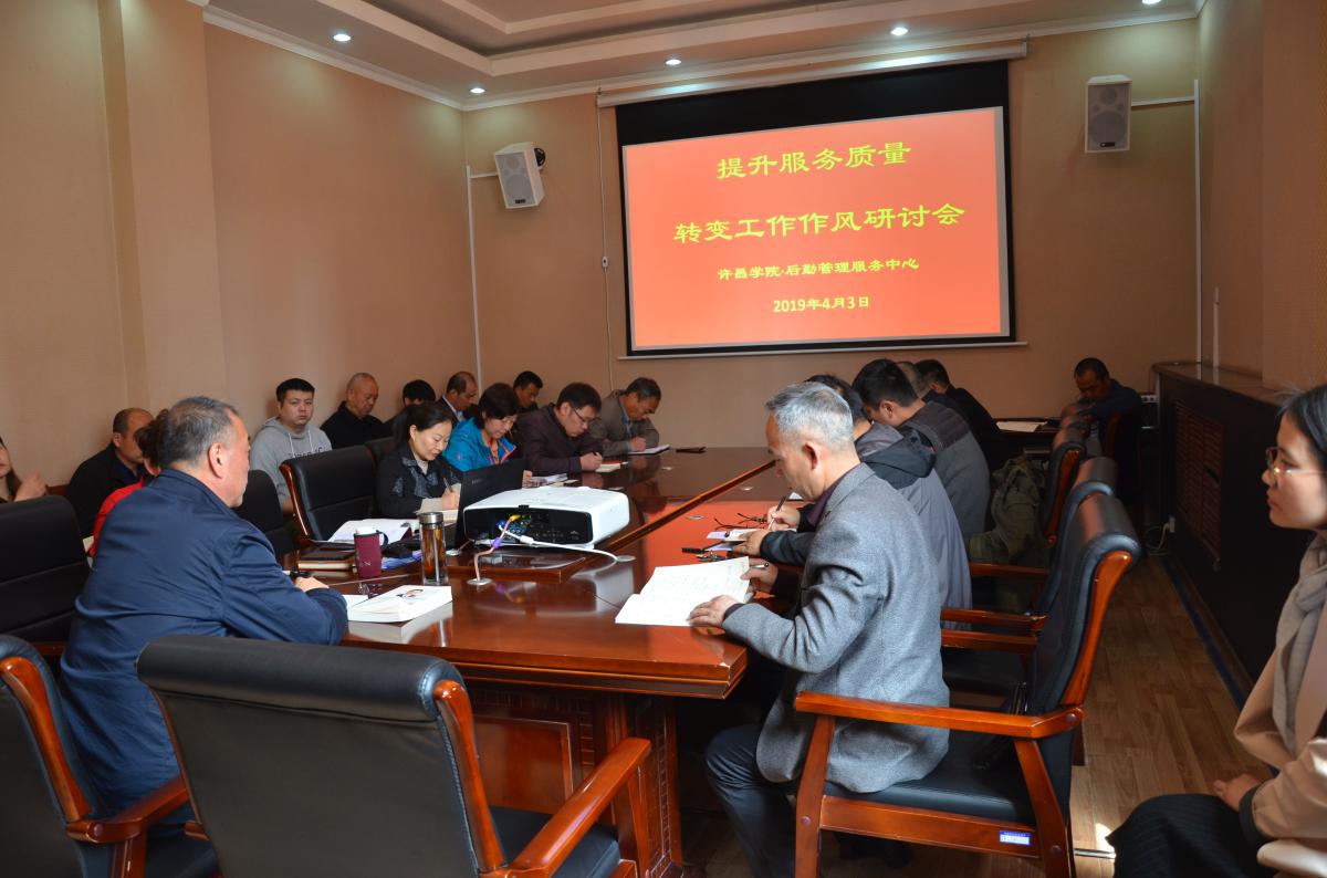 为确保巡视组提出的整改问题扎实推进, 4月3日上午8:20,后勤管理服务中心在沁园春三楼会议室召开了提升服务质量,转变工作作风专题研讨会。后勤全体中层干部和党员30余人参加了会议,会议由党总支书记王建强主持。