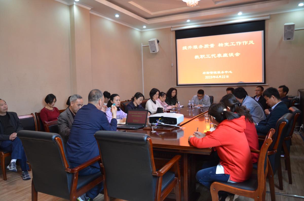 为了全面提升后勤保障服务能力,4月22日,后勤管理服务中心在沁园春三楼会议室召开了“提升服务质量 转变工作作风”教职工代表座谈会。来自学校各院系20余名教职工代表参加了座谈会。会议由党总支书记王建强主持。