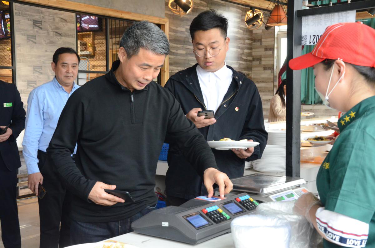 院长岳修峰一行重点视察了沁园春二楼餐厅,全面查看了餐厅的环境卫生,并向就餐的同学详细询问了饭菜的质量、品种以及对新装修沁园春餐厅的感受。午餐时间,岳院长的出现让同学们倍感惊喜。岳院长与同学们一起排队,用餐卡购餐,并与同学们一起就餐。在进餐过程中,他与坐在同一桌的同学们亲切交流,当听到同学说对目前的饮食服务很满意时,露出了欣慰的笑容。