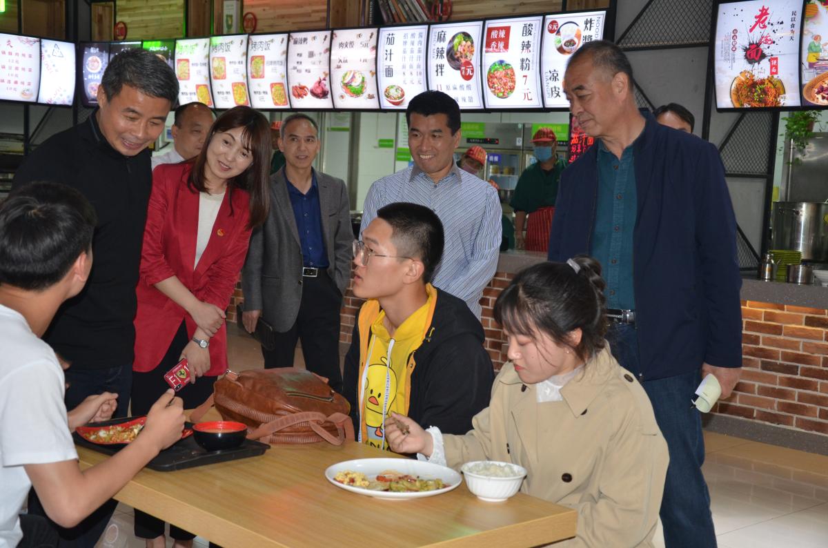 4月30日, 院长岳修峰在团委书记谢依楠的陪同下对沁园春餐厅进行视察。党政办公室、宣传部、后勤管理服务中心等有关部门负责同志参加调研。