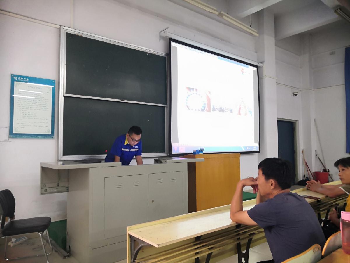 2019年8月27日,后勤管理服务中心饮食服务公司在B合4教室开展了新学期岗前培训活动。饮食服务公司管理人员及各餐厅一线员工200余人参加了本次培训。此次培训特邀河南省消防协会刘准教官向大家做消防安全知识讲座,并进行现场灭火演练。许昌市天伦燃气公司技师王凯作天然气安全知识讲座。培训由饮食服务公司经理杨根伍主持。