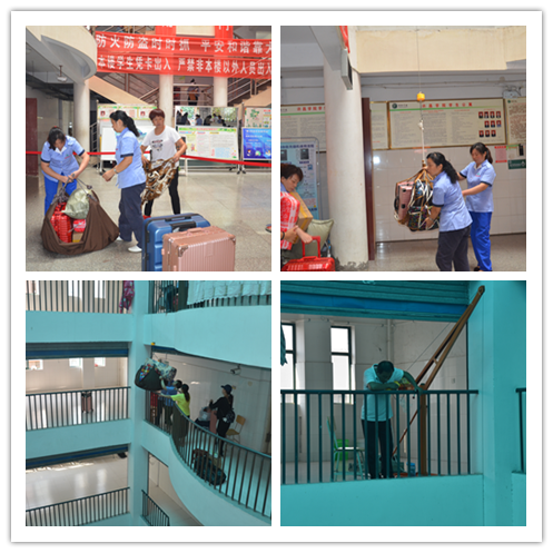 物业服务公司公寓部工作人员早上7点全体到岗,以最饱满的状态迎接新生和家长门的到来。宿舍阿姨向新生介绍寝室入住手续、安全提醒等注意事项,确保新生顺利入住;保洁工作全天候不间断,确保迎新现场和宿舍区域时刻干净。为了减轻新生搬运行李的负担,每栋宿舍楼投入1台卷扬机帮助新生搬运行李。