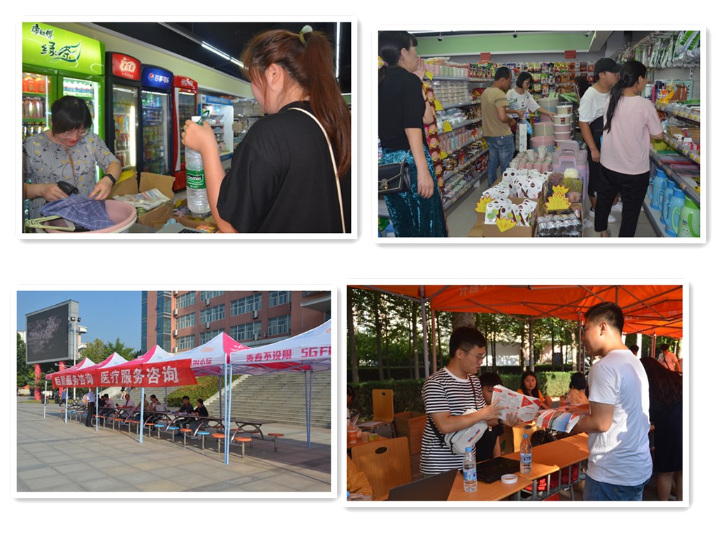 商贸服务公司学梓超市5家门店提前备足日用百货区,洗漱区,食品区,生鲜区,饮料区共计7000多种商品供新生选购。提供一站式便捷购物,及时调控和补货。商贸公司员工全员上岗,每天都坚守到晚上十点直至最后一个顾客选购完成。 校医务室也为新生提供24小时就医服务。