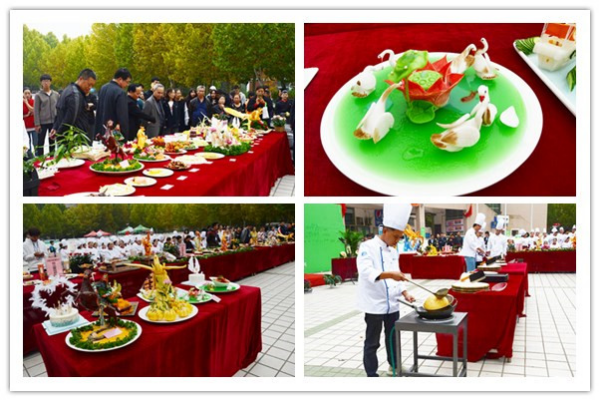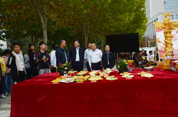 11月1日在满庭芳餐厅广场前举办的“厨艺大比拼”可谓是本次饮食文化节最精彩的环节,参展的餐品品种多样、形态各异,主食造型雕刻、美味甜点拼盘、菜品创新烹饪等彰显了厨师高超的烹饪技艺。在同学们厨艺竞技现场,琳琅满目的美食传递着同学们的烹饪的热爱和创意。期间,校工会主席高金星到活动现场观看、指导。活动结束后,参展的美食对广大师生免费品尝。