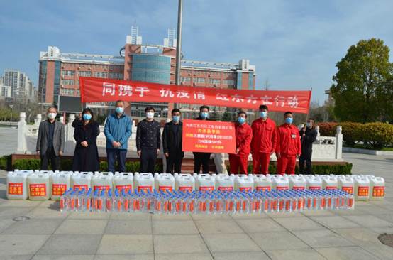 3月17日上午,我校校企合作单位河南红东方化工股份有限公司为我校捐赠抗疫防护物资次氯酸钠消毒剂1000公升,酒精540公升。校工会主席高金星,后勤管理服务中心主任刘军伟等人代表学校接受捐赠。
