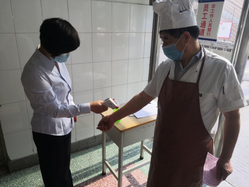 饮食服务公司启动学生返校后学生食堂供餐工作预案,严格排查上岗人员是否符合条件、确保队伍安全。实行套餐供应、定点取餐、分散就餐的方式保障师生餐饮需求。做好食堂的防疫宣传,在食堂外设置等候区,食堂内部张贴窗口1米隔离线、窗口温馨提示、就餐入口及出口引导指示箭头等;在食堂内外安装洗手池、配备洗手液,做好专业洗手7步法宣传,增设院系班级导示图,引导师生按学校防控工作的就餐要求分批有序进入食堂,确保购餐有序、用餐安全。强化后厨的保洁、消毒工作,统购伙食原料,确保菜品质量和食品卫生安全。