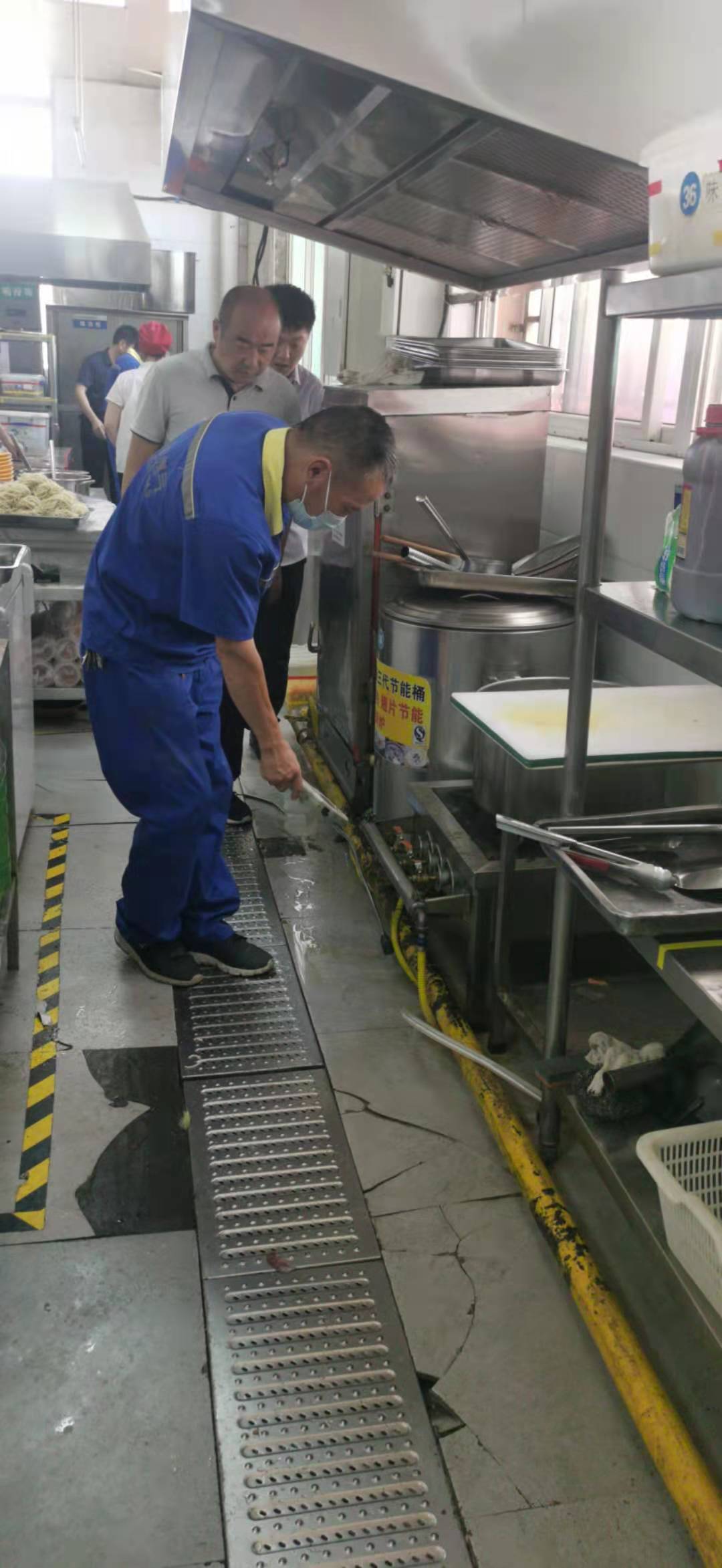 后勤管理服务中心特邀许昌天伦燃气专业工作人员对校本部、兴华校区学生餐厅、商户、教工餐厅、浴池、锅炉房天燃气管道进行了安全大检查,检查过程中,两位师傅利用“手持天然气检测仪”重点对管道接头、阀门、软管及炉具和管道连接处是否有泄露情况、管道腐蚀情况进行了逐一测量检测。