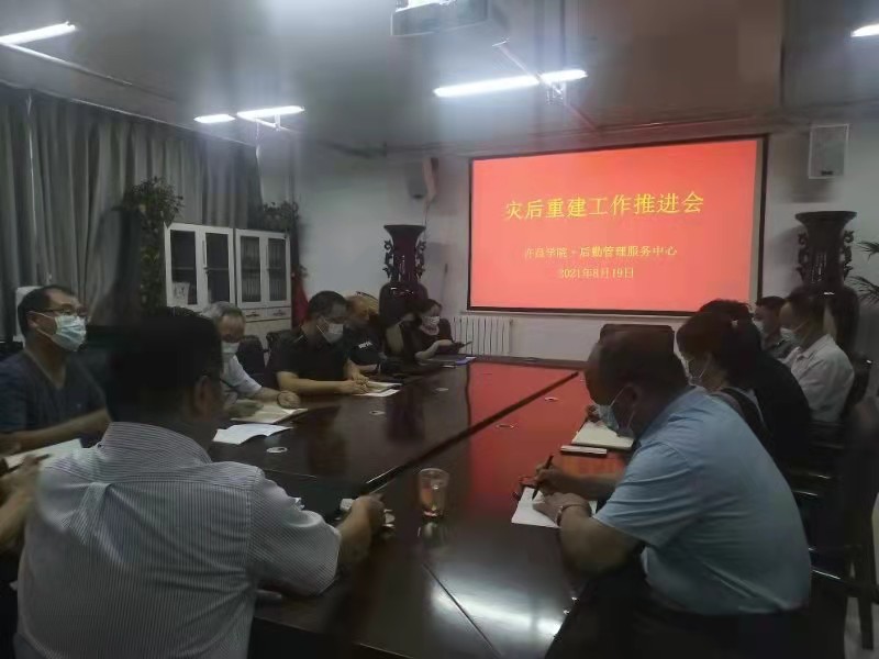 会上,刘军伟主任传达了学校关于做好灾后恢复重建工作的相关文件精神,通报了我校总体受灾情况,宣读了学校灾后重建实施方案。与会部门主管领导针对受灾报损、灾后恢复重建工作推进情况、存在的问题进行了汇报,并就有关问题进行了分析研判。