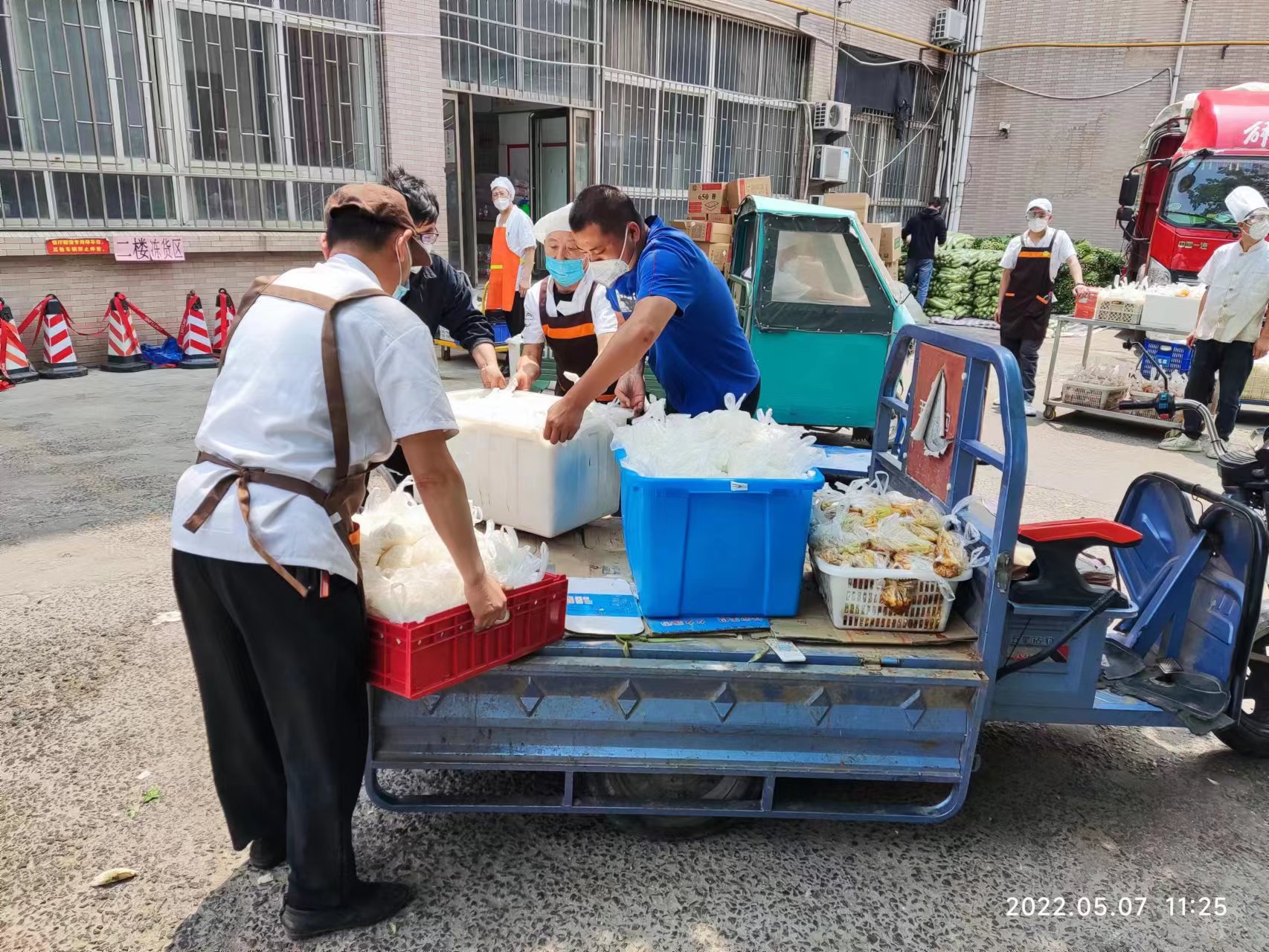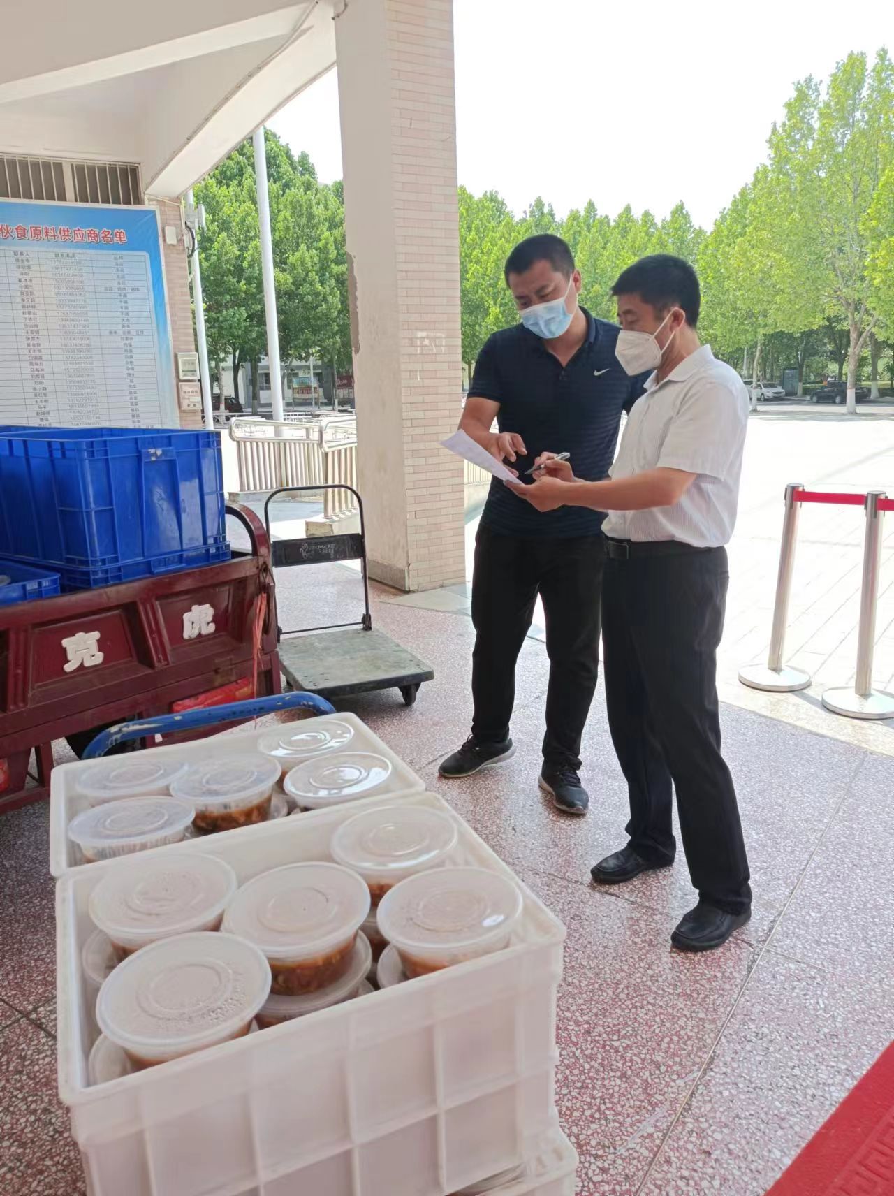 5月5日校园突发疫情,学校实施全面封控静态管理。后勤管理服务中心饮食服务公司立即启动应急预案,临时召开紧急会议,围绕及时供餐、营养搭配、食品安全、信息共享、学生满意度等工作进行紧密部署。封校初期,全河南省,许昌市处于封控状态,小区封闭、农贸市场封闭,车辆禁止上路,部分工作人员被赋黄码,限制不能出户,饮食服务公司420名工作人员面临的是学校2.5万人的就餐问题,供餐比例1:175。然而,就是这420人在仓促间维持着全校25000人的供餐任务,完成了学校静态管控期的供餐服务工作。5月5日下午,当一份份盒饭紧张有序地从食堂运送到封控宿舍,同学们赞不绝口的盒饭背后考验的是后勤处突速度和420位餐饮职工默默地坚守。