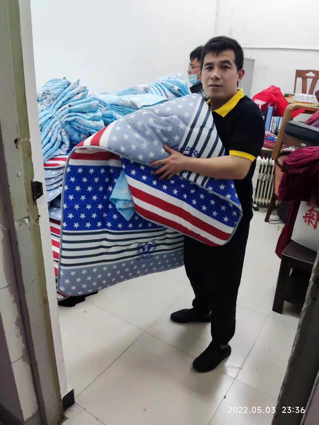 尽最大限度保证学生有饭吃 饮食服务公司打破原有供餐模式,重新组合班组,实行统一采购食材、统一加工饭菜、统一配送饭菜,一个班组负责一栋宿舍楼供餐。封控前期,食材非常紧张,只能采购到什么菜品就做什么菜,还要考虑荤素搭配,蒜薹、芹菜、菜花已算是能采购到的最好菜类品种。馒头供应,只有一家馒头厂商满足开工生产,早餐每人按2个馒头算,每顿早餐就需50000个馒头,加上中午和晚上每天至少需要60000个馒头,而这个厂家只能满足我们8000个馒头,面对这种情况餐厅只能通过调整主食品种来保证学生就餐需求。买不来馒头只能发挥班组潜能,烙油馍、蒸馒头、蒸包子、制作手抓饼、炸油馍头等,从凌晨两点开始到早上八点,勉强维持供应早餐。