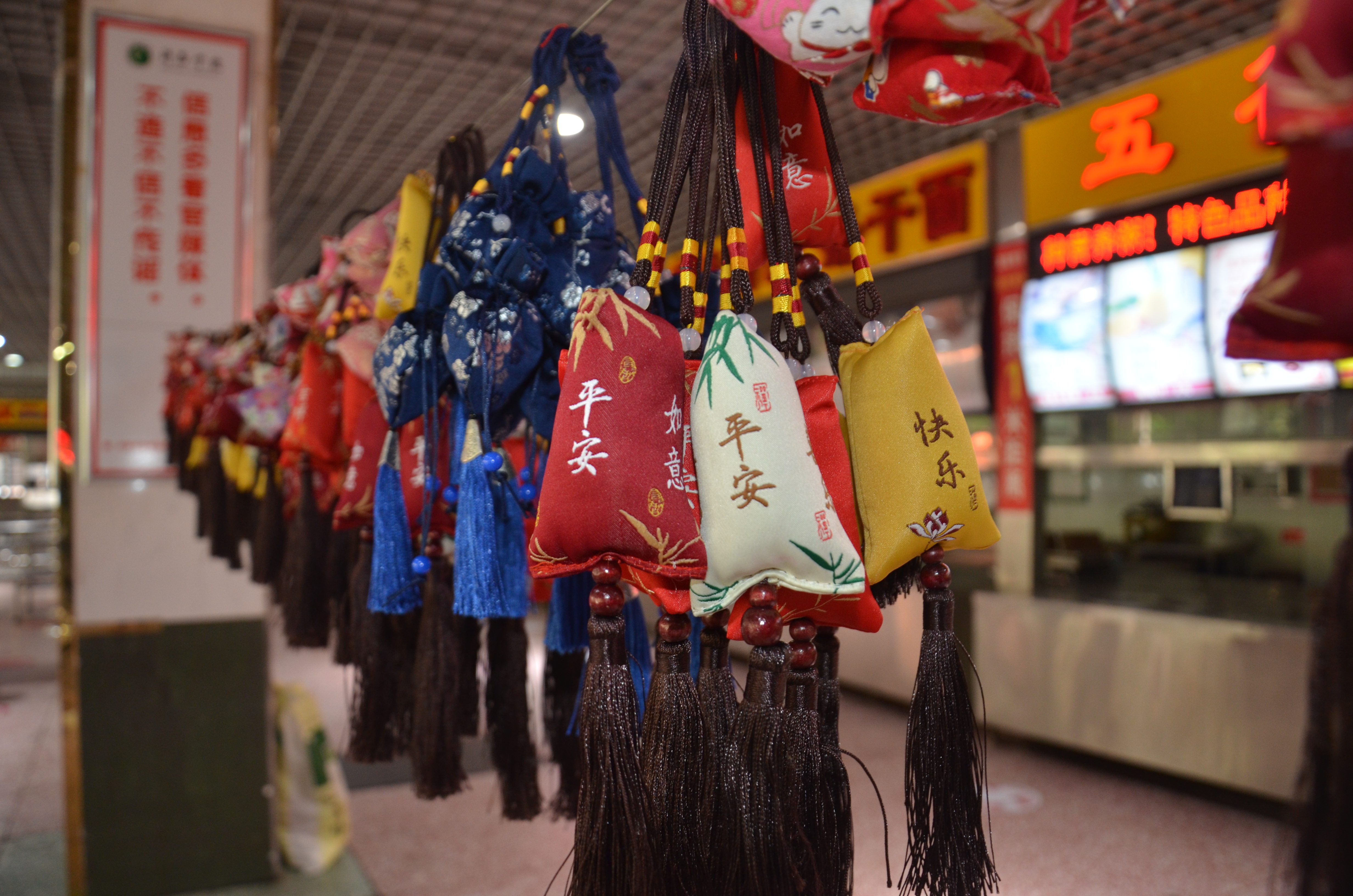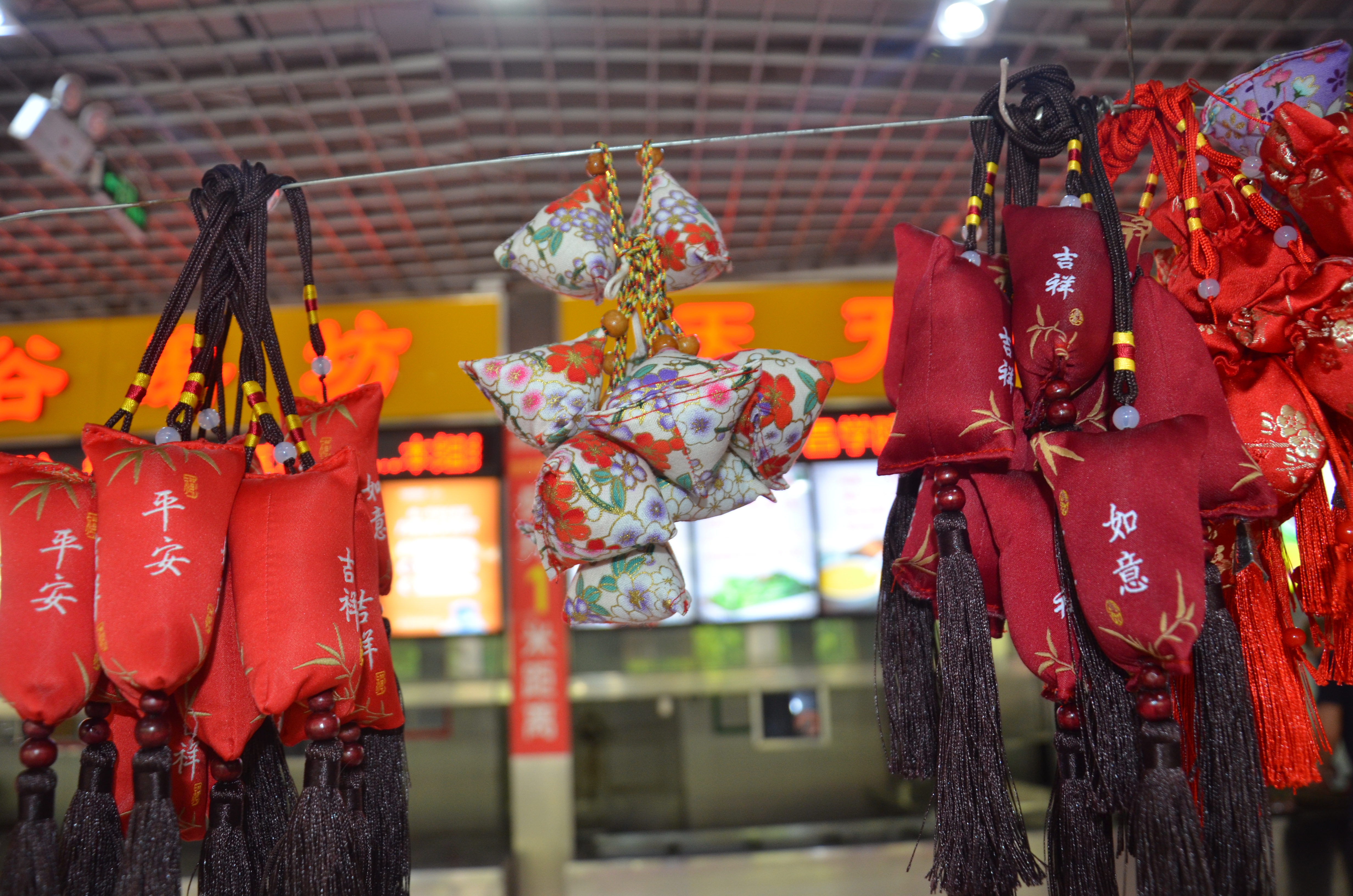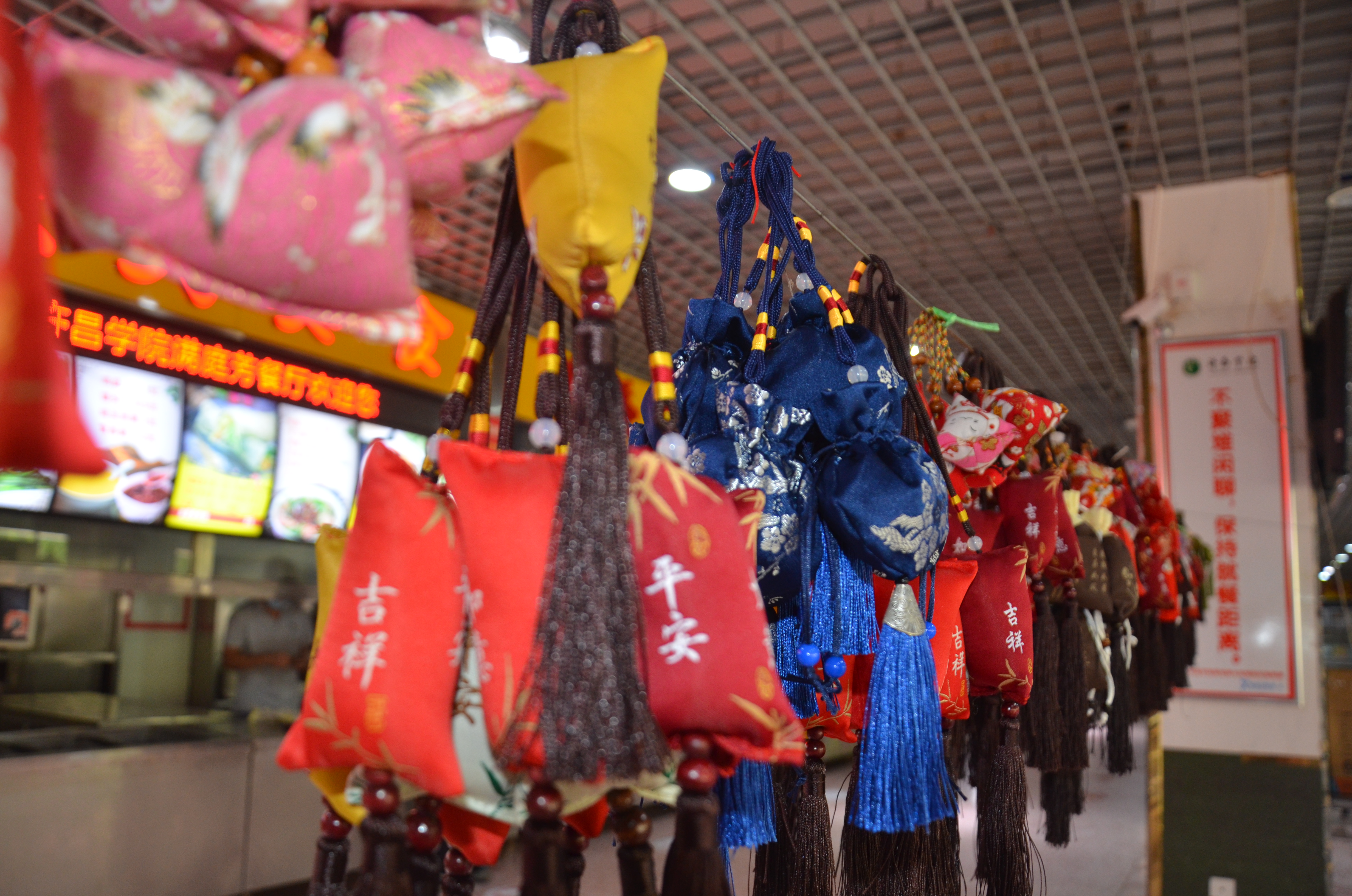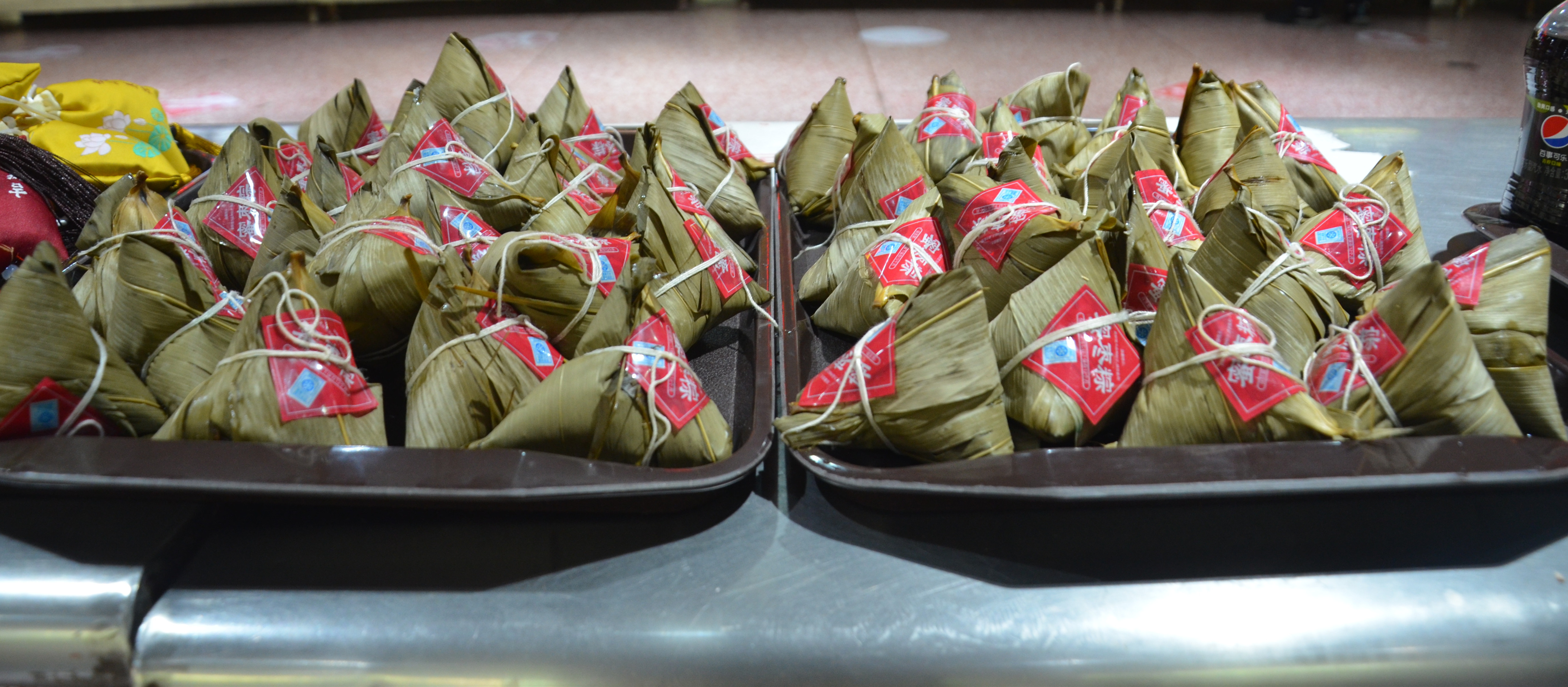 满庭芳餐厅大厅中央悬挂着五彩斑斓的香囊,热气腾腾的粽子摆放在特供窗口,中午11时,后勤管理服务中心党委书记李文东和主任刘军伟来到满庭芳餐厅,为在校迎考的考生们发粽子和香囊,并祝愿同学们心想事成,金榜题名奔赴好前程。领取现场井然有序,同学们欣赏着香囊,脸上洋溢着幸福的笑脸。国教宋文辉同学说“感谢后勤老师们在百忙之中为大家准备的节日祝福,我们一定不辜负老师们的祝福,全力以赴迎接考试。”