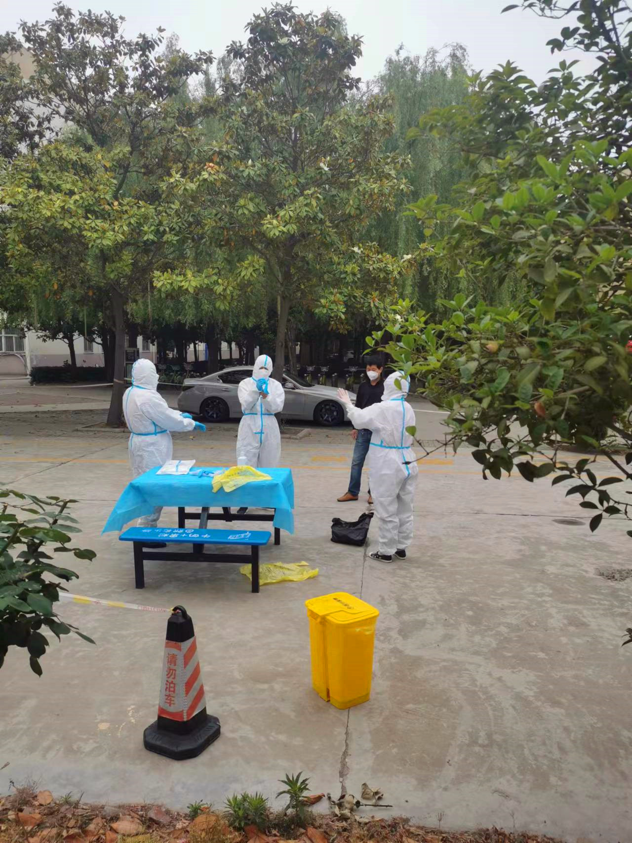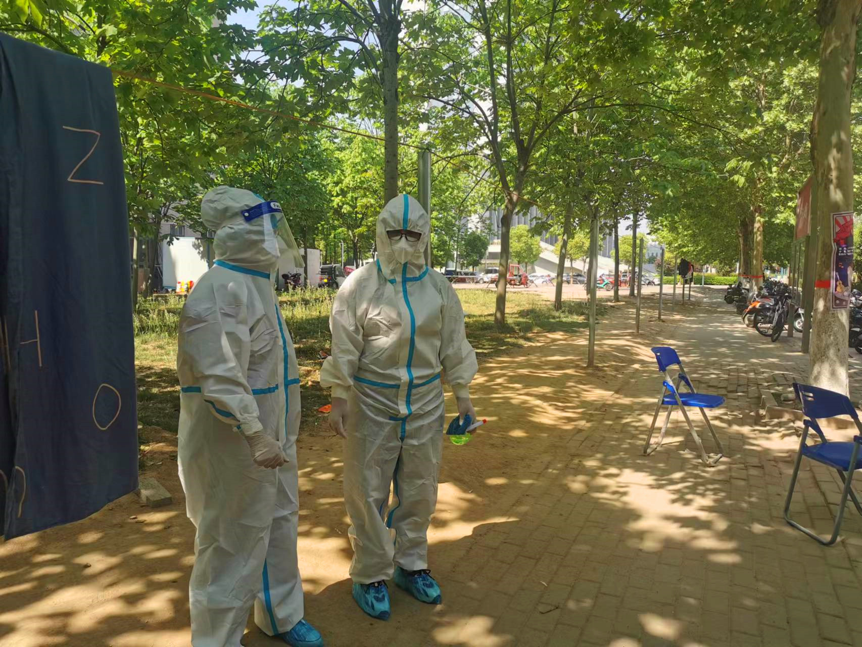 5月7日上午10:10,校医院医护人员徐自前、贾改萍开始投入了兴华路校区疫情防控及学生闭环转运工作中。