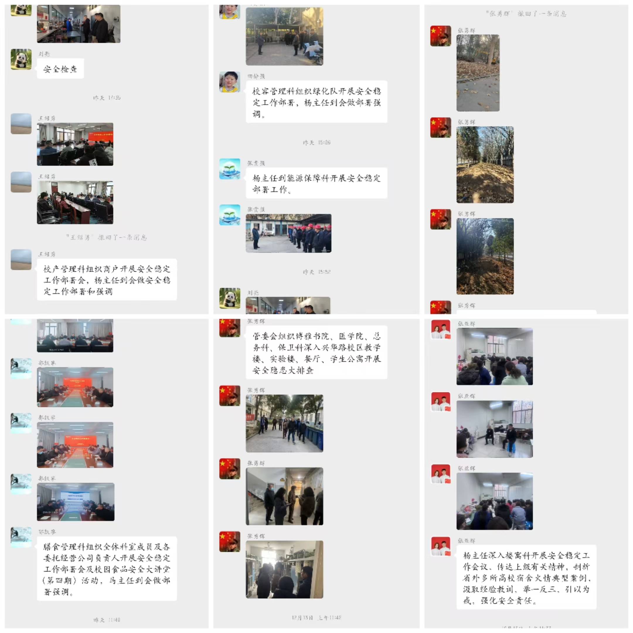 会上,黄军伟就后勤安全稳定工作强调,要充分认识校园安全工作的重要性,进一步强化思想引领、阵地建设,严格落实“党政同责、一岗双责、齐抓共管、失职追责”“谁主管谁负责”“管业务必管安全”的工作要求,牢固树立前瞻思维、极限思维、切实增强维护安全稳定的政治责任感和紧迫感,真正把“时时放心不下”的责任感转化为“事事心中有底”的行动力,以实际行动坚定拥护“两个确立”、坚决做到“两个维护”,以高水平安全服务保障学校的高质量发展。
