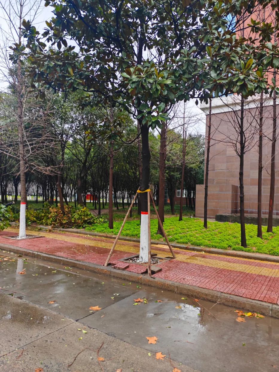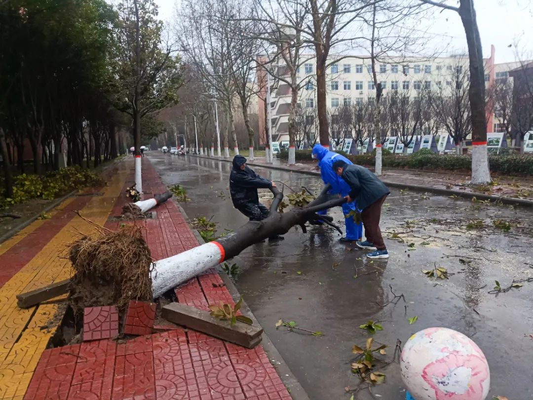 受大风影响,校园内部分树木倾倒,影响了道路通行。校容科迅速组织人员对倒塌树木进行清理,及时移除障碍物,确保校园主干道畅通无阻。校园内其他树木进行了加固处理,防止再次发生倾倒事故。