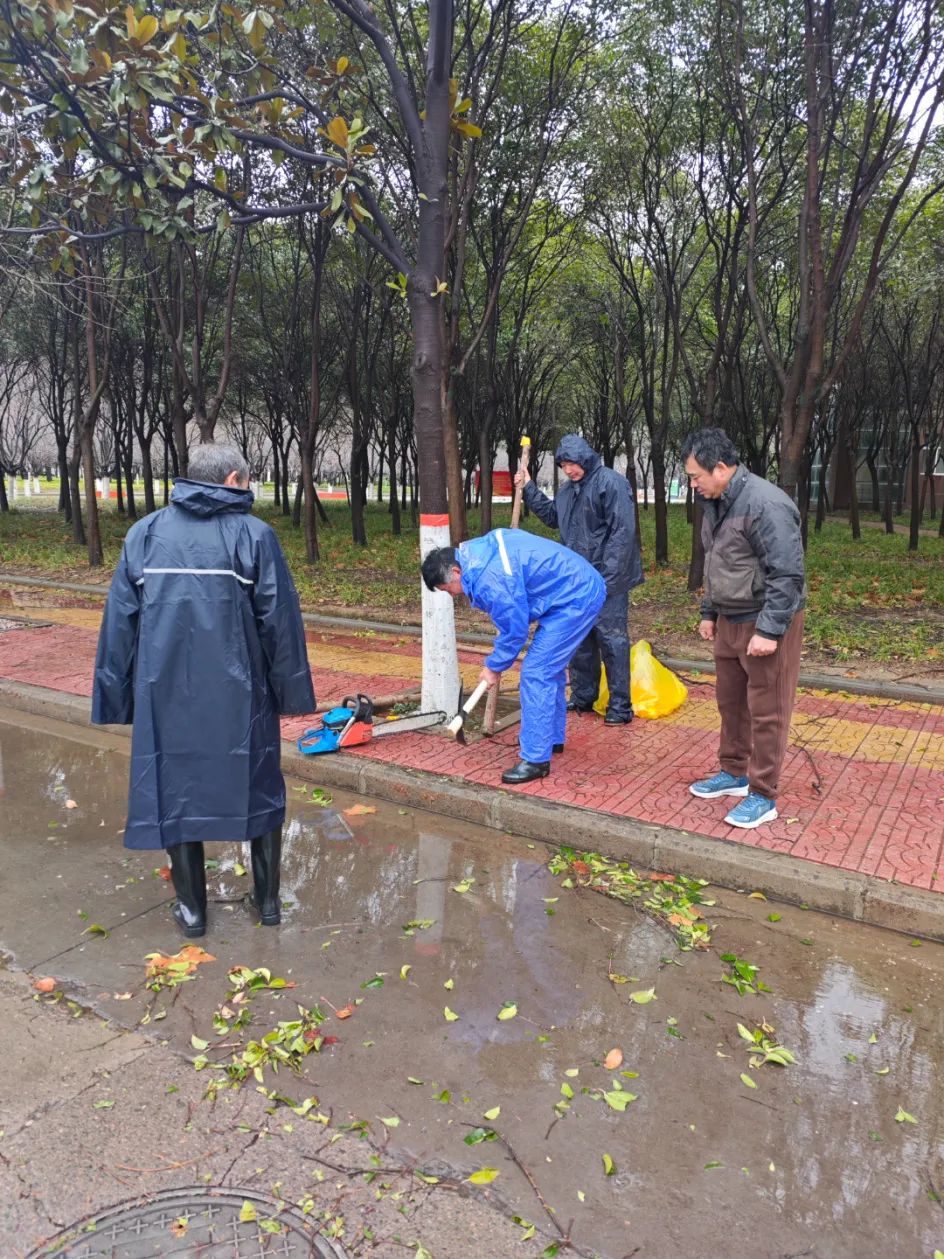昨夜,我市遭遇强风暴雨天气,后勤管理服务中心迅速行动,全面开展校园巡查与应急保障工作,确保师生安全与校园设施正常运行。