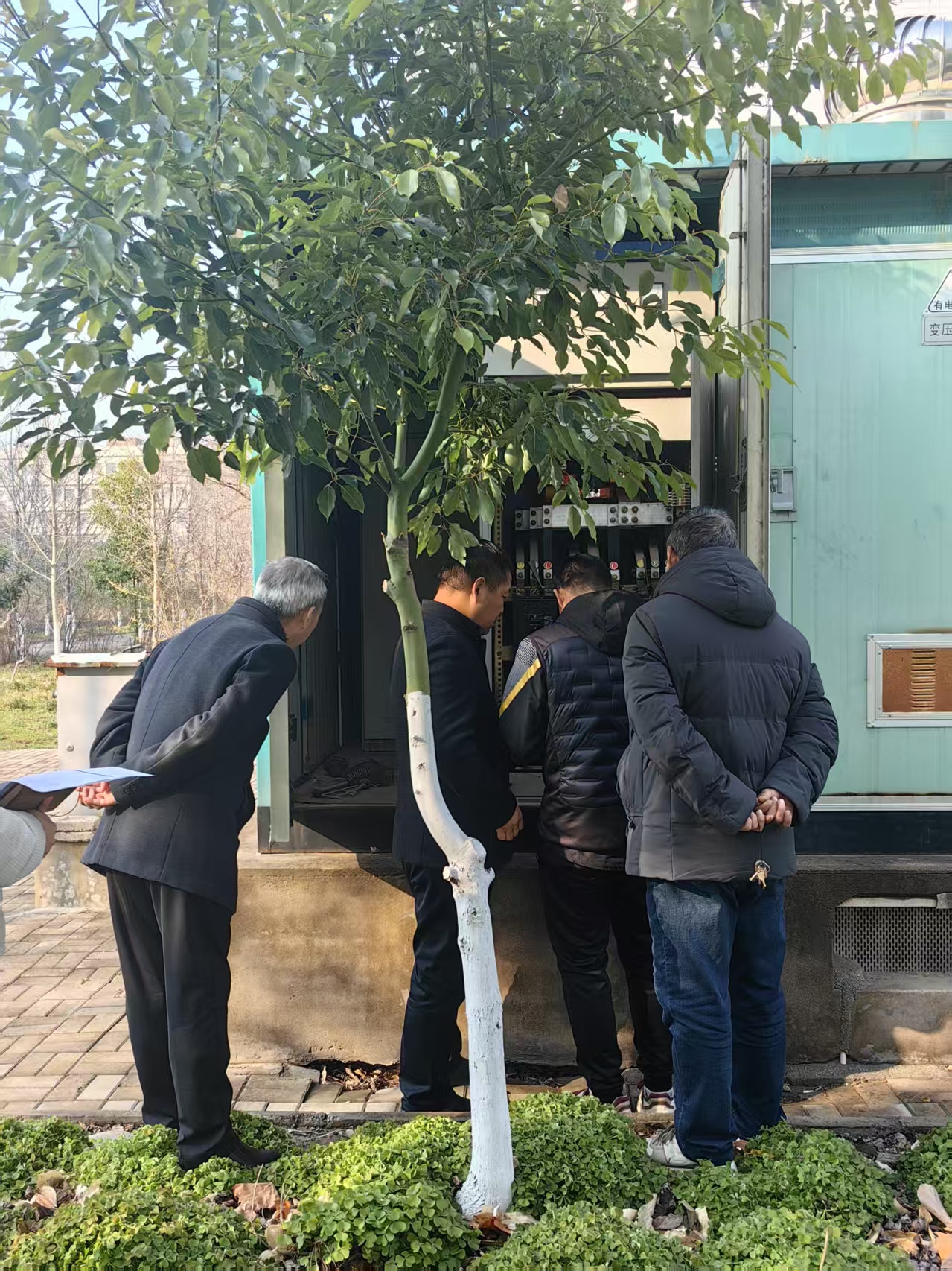 在电力设施改造现场,史若延一行详细听取了项目负责人关于改造方案、施工进度及安全保障措施的汇报,实地查看了配电室、电缆敷设等重点区域。史若延强调,电力设施改造是保障校区教学、科研及生活正常运转的基础工程,必须坚持“安全第一、质量为本”的原则,科学规划、精细施工,确保项目按期高质量完成。杨平勇、岳永晓分别从技术规范、节能降耗等方面提出优化建议,建议相关部门加强协调配合,确保改造工程与校区整体发展规划相衔接。
