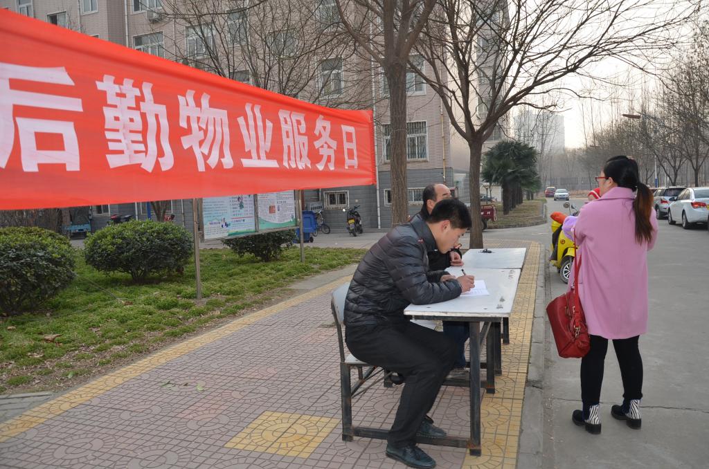 1219日,“物业服务日”的大红横幅在家属区门口显得格外醒目,为了进一步推进物业服务文化的传播,积极构建和谐小区。后勤管理服务中心在家属区开展物业服务日活动,党总支书记王建强和相关部门负责人亲临现场为老师们答疑解惑。