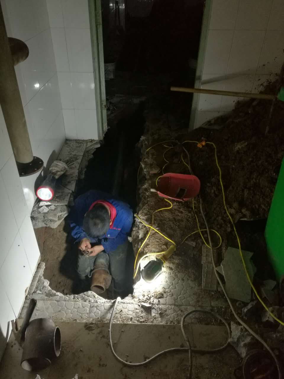 “东启智楼一卫生间出现跑水情况,需要马上赶往抢修!” 9月4日下午5时许,在接到故障通知后,维修班长曹英俊带着队员们出发了。在启智楼卫生间地面上,清水从地下溢出。“先把水闸关了!”果断下达指令后,曹英俊和队员们立刻展开了施工。因为管道在地下,必须先挖开地面。曹英俊和队员们干得很快,一个小时后,地面上的砖就被挖开,露出了下面的水泥垫层。“穿上雨鞋吧,下面会出泥的!”曹英俊说,接下来要用钩机打开水泥垫层,因为跑水的缘故,下面可能已经全是泥了。干他们这活,身上基本没有干净的时候。“下面可就该费劲儿了!”管道埋在地下约2米深的地方,挖的时候要格外小心,因为除了水管,可能还会有电缆等线路,如果不慎挖断,就可能出现断电等严重后果。在潮湿闷热的坑内干活,师傅们不一会儿就汗流浃背,汗液混合着泥水贴在身上,说不出的难受。“管道露出来了!”晚上9时许,破损的管道终于被挖了出来,曹英俊和队员们再次下到了坑里,站在没过膝盖的泥水里,他们开始对水管进行检查。“不算严重,消防管道和供水管道坏了,得换新的!”