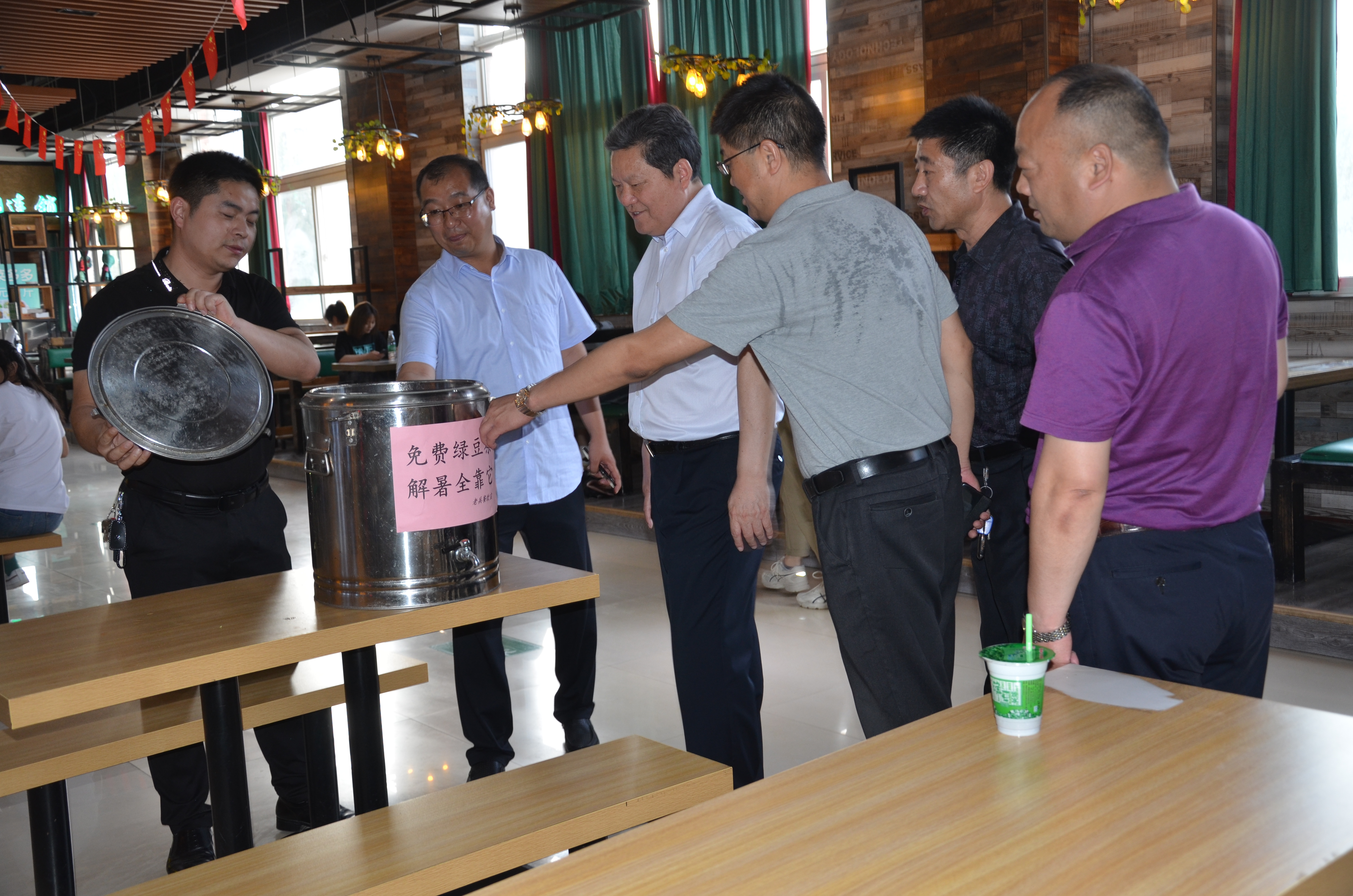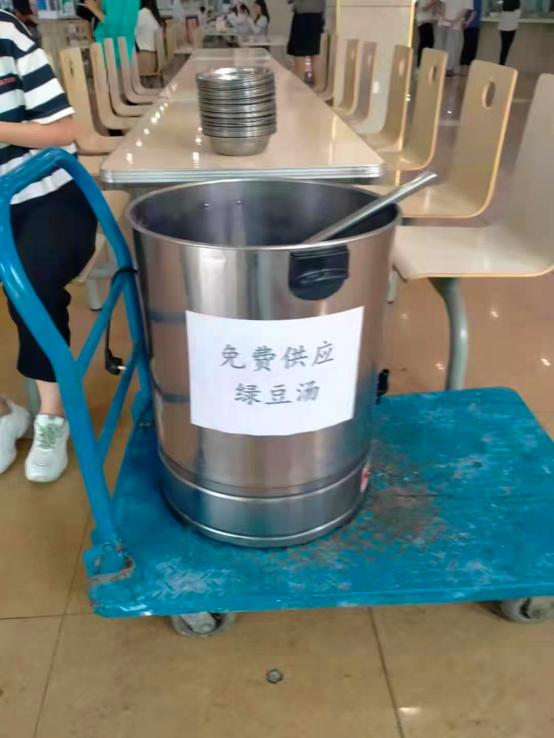 后勤管理服务中心饮食服务公司从6月1日开始,在校本部和兴华校区每个学生餐厅每个楼层都设置消暑饮品供应点,大大的不锈钢汤锅上贴着“免费绿豆汤,欢迎师生饮用”字样,很多老师同学在休息时都会接一碗绿豆汤,喝几口。